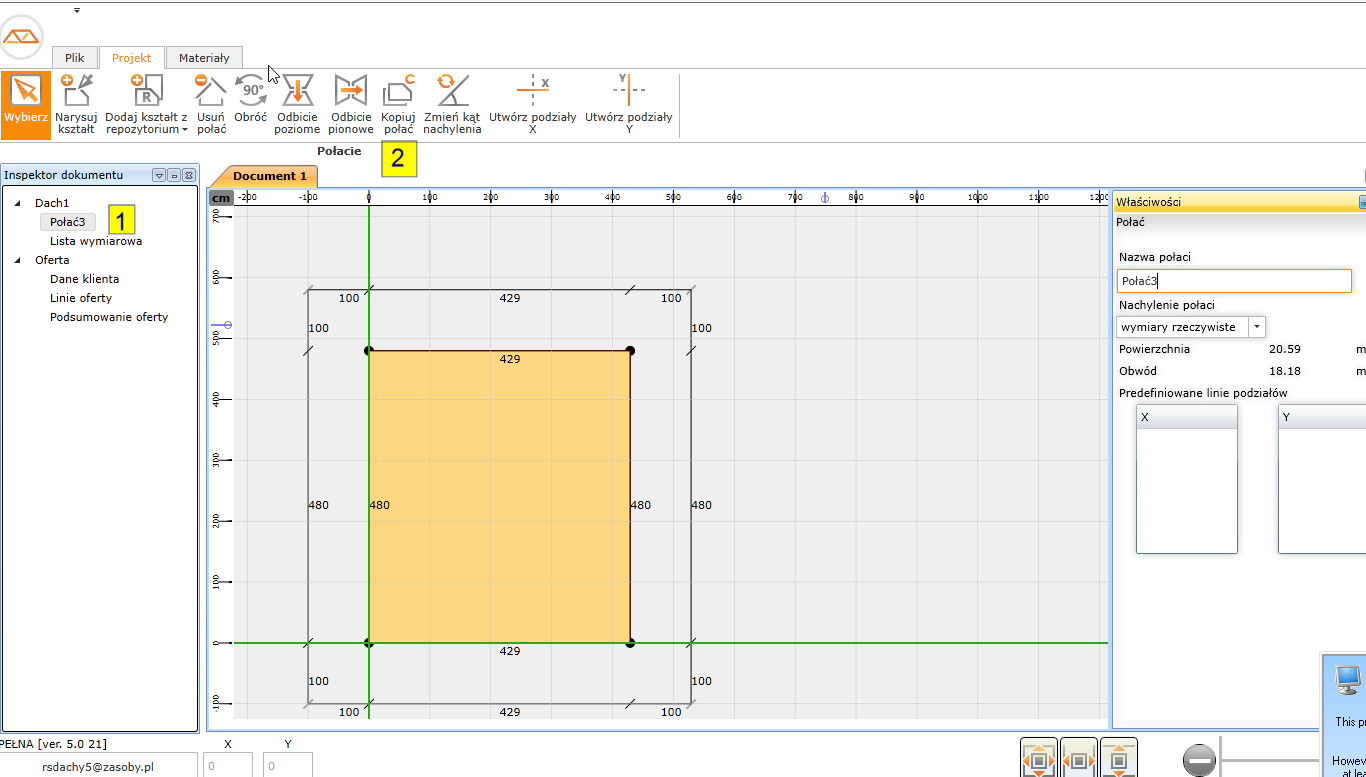 1.1.1. Wybrać w inspektorze dokumentu Połać1