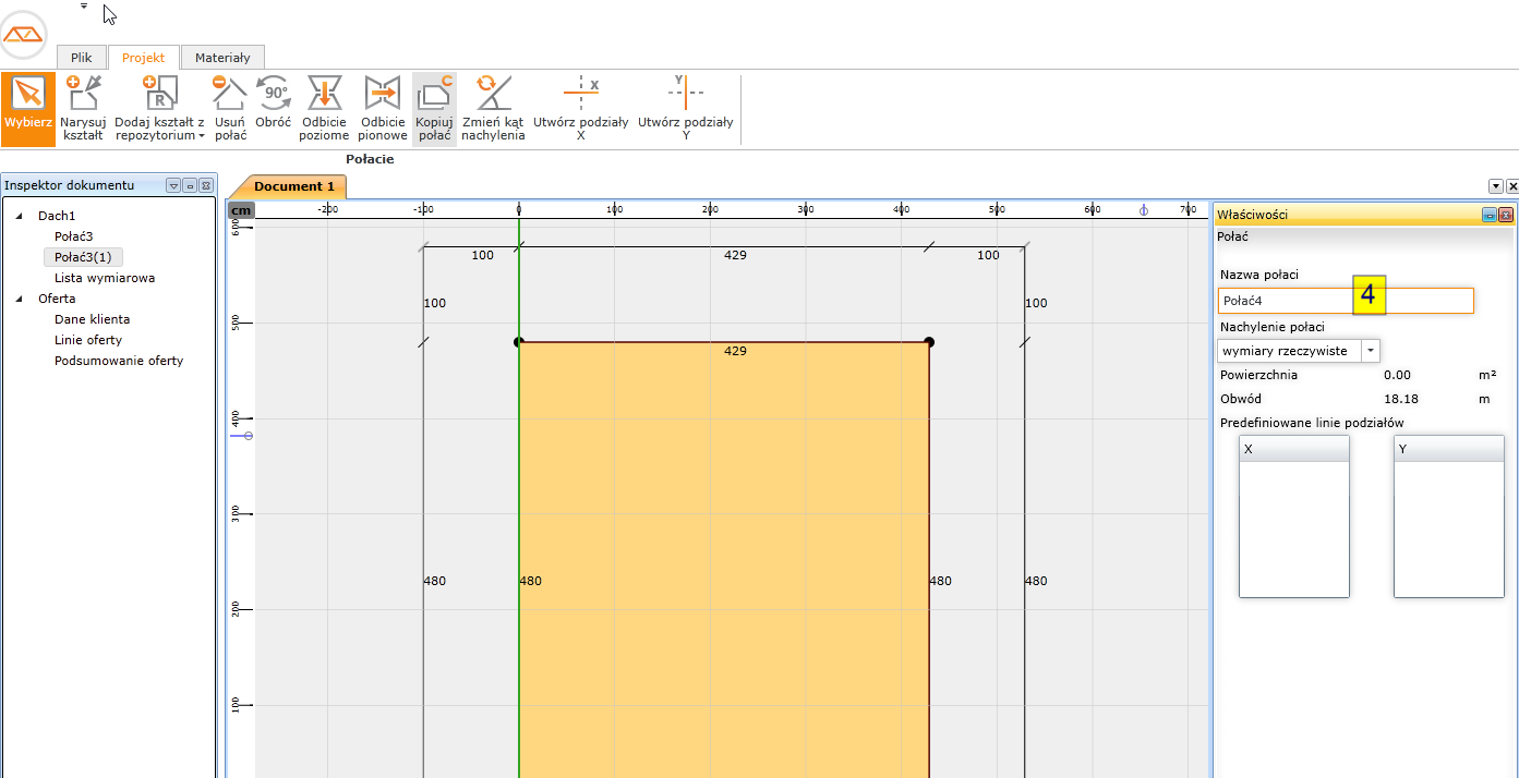 1.4.3. Zaznaczyć Połać3(1) i zmienić nazwę na Połać4